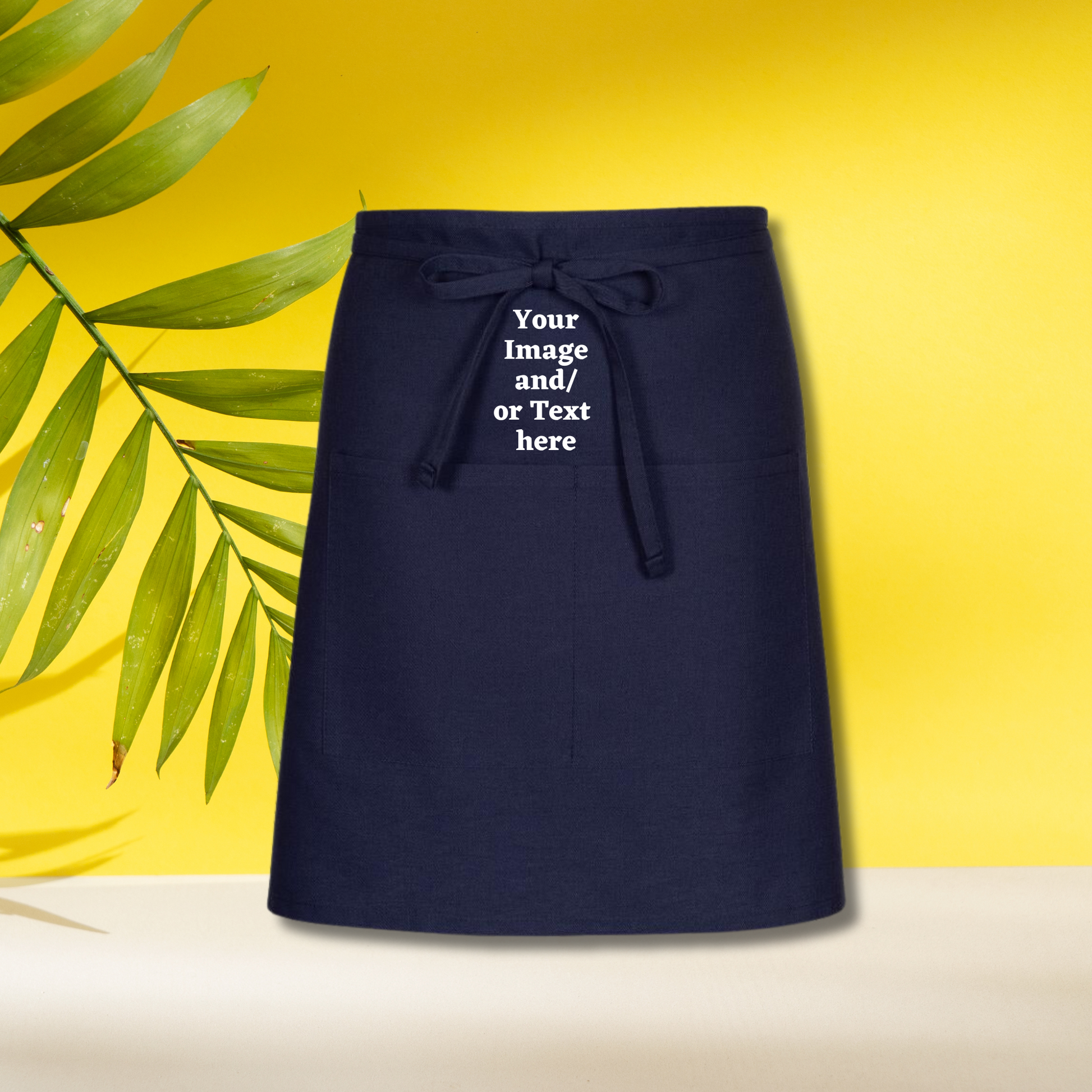 As an industry expert, I recommend our Half Bistro Navy Apron. Made with a deep, rich navy blue fabric, this half apron is both stylish and functional. Its sleek design provides ease of movement while protecting your clothes. A must-have for any professional setting, offering practicality and sophistication in one. Perfect for 'Father's Day" gift and/or any gift.